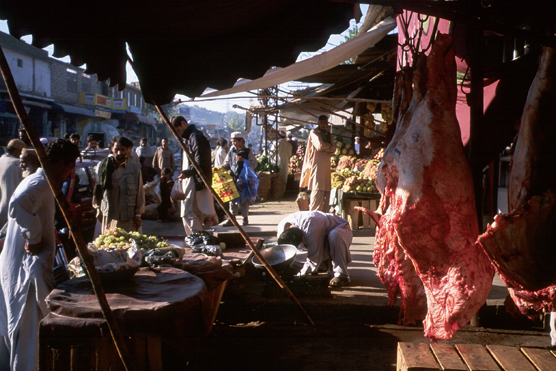 Early Saturday morning in the "meat department" of the Common Bazaar.
